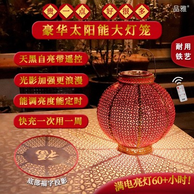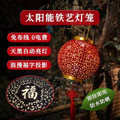 太阳能铁艺大红灯笼春节过年乔迁婚庆户外装饰投影灯