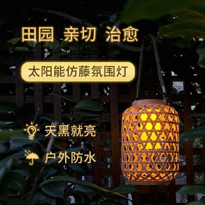 太阳能仿藤编竹编灯笼氛围灯花园庭院灯