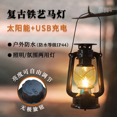 太阳能复古铁艺马灯庭院露营帐篷灯氛围照明灯