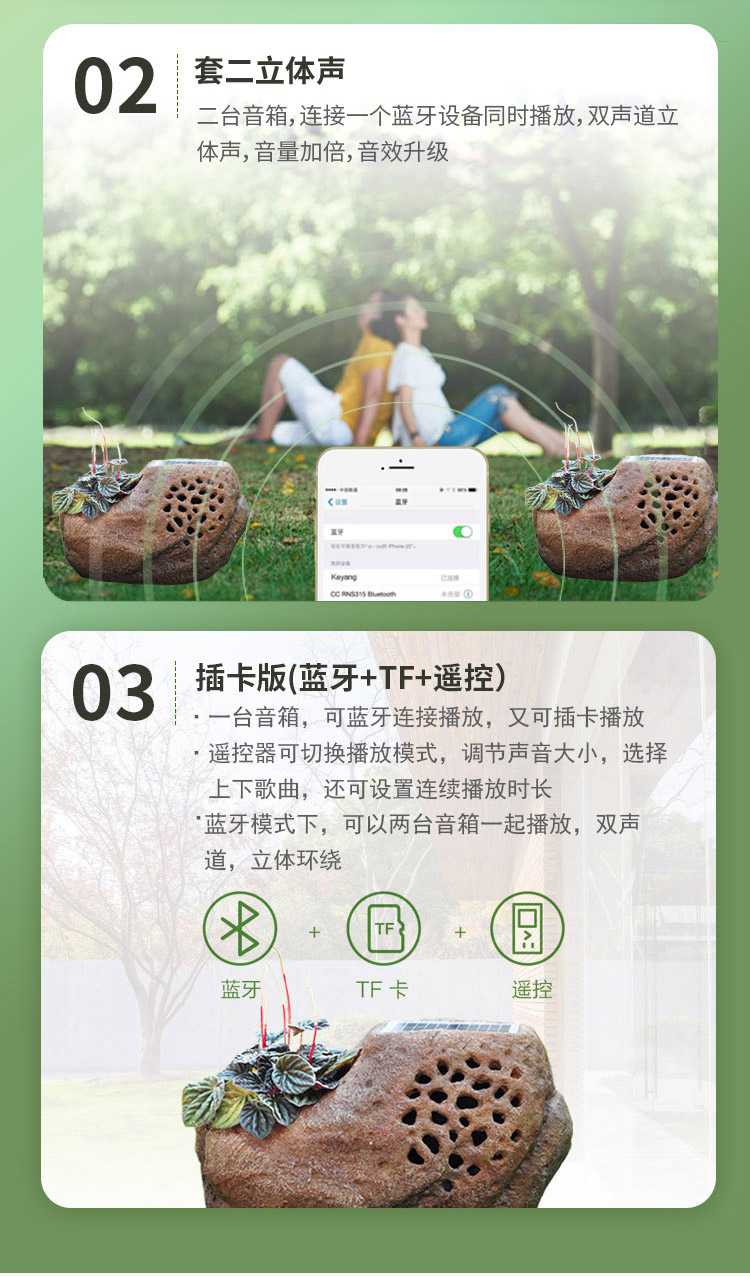 太阳能蓝牙音箱鹅卵石花园户外防水音响